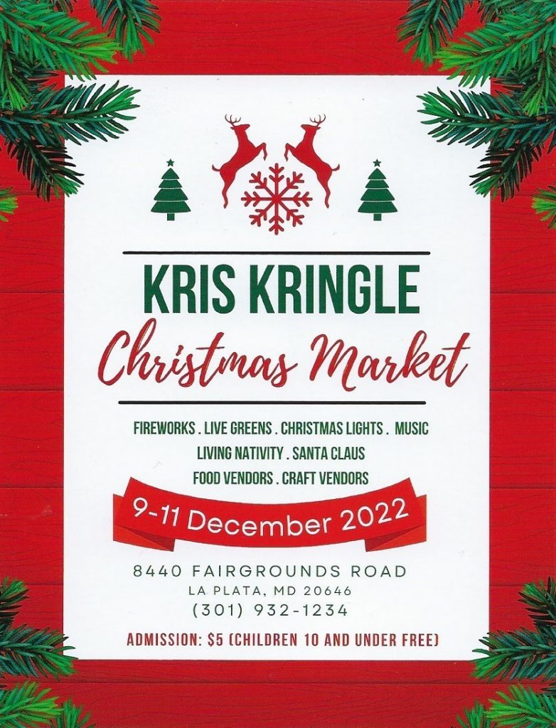 The market admission fee of $5.00 benefits The Southern Maryland Food Bank, Charles County Association of Emergency Medical Services and the Charles County Volunteer Firemen’s Association and the Charles County Fair.