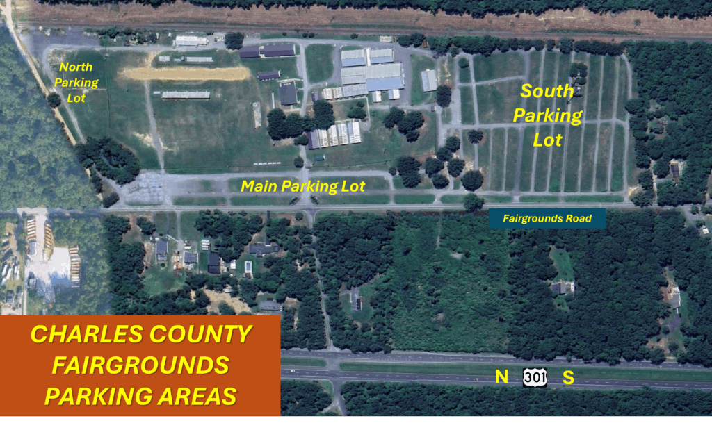 We strongly recommend using our satellite parking lot at the Charles County Courthouse and Government Building parking lot and take a free shuttle bus to the fair! We have dedicated a special bus lane from Rt. 301 right to our main gate for faster service! Beat the traffic!